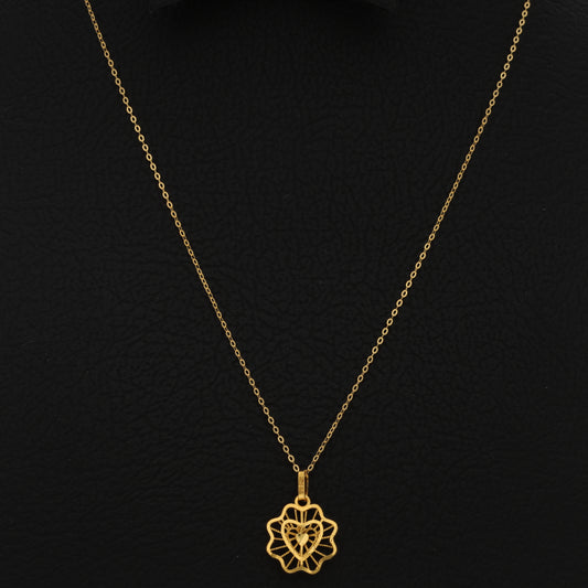 Gold Necklace (Chain With Hollow Heart in Flower Shaped Pendant) 21KT - FKJNKL21KM9808