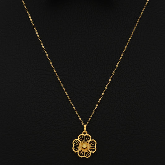 Gold Necklace (Chain With Hollow Flower Shaped Pendant) 21KT - FKJNKL21KM9820