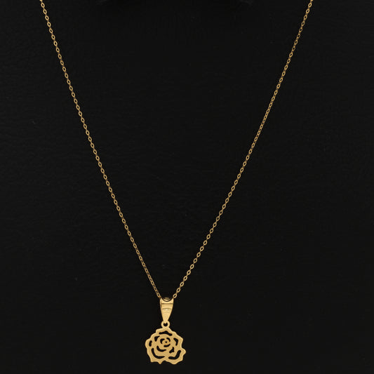 Gold Necklace (Chain With Hollow Rose Shaped Pendant) 21KT - FKJNKL21KM9818