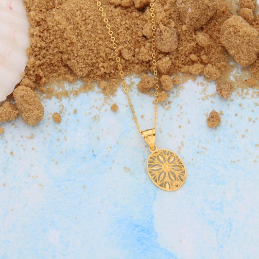 Gold Necklace (Chain With Hollow Flower Shaped Pendant) 21KT - FKJNKL21KM8676