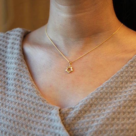Gold Necklace (Chain with Star Flower Shaped Pendant) 21KT - FKJNKL21KM8669