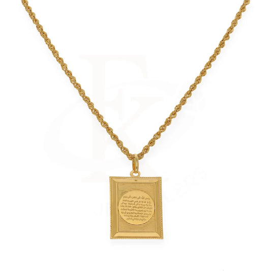 Gold Necklace (Chain Hollow Rectangle Frame Shaped Ayatul Kursi Pendant) 21KT - FKJNKL21KM9622
