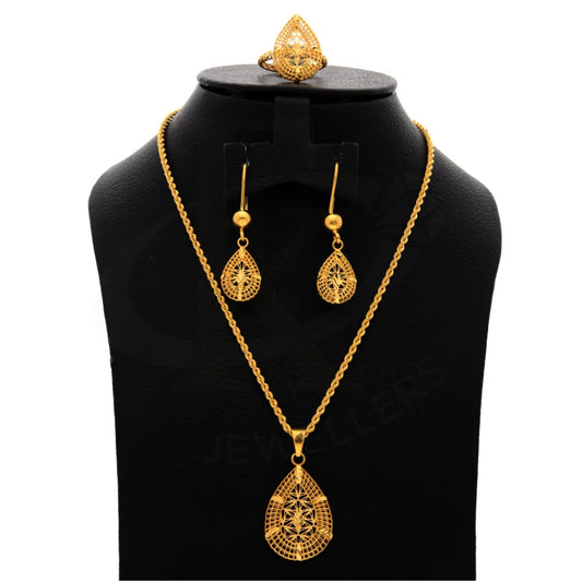 Gold Hollow Teardrop Shaped Pendant Set (Necklace, Earrings and Ring) 21KT - FKJNKLST21KM8514