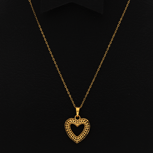 Gold Hallow Heart Shaped Necklace 21KT - FKJNKL21KM9330