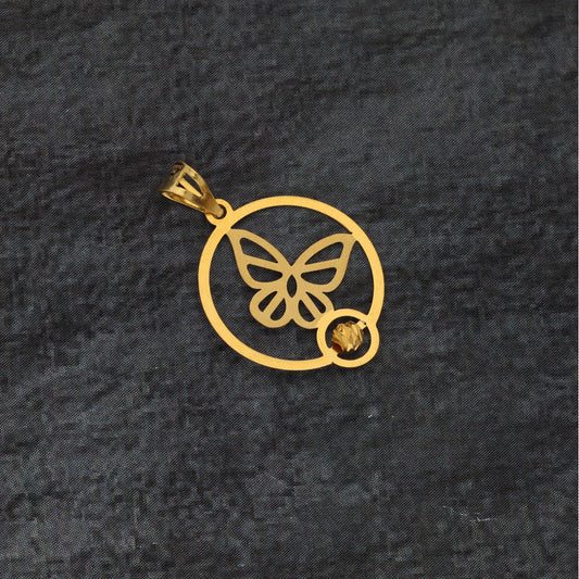 Gold Butterfly in Circle Pendant 21KT - FKJPND21KM9571