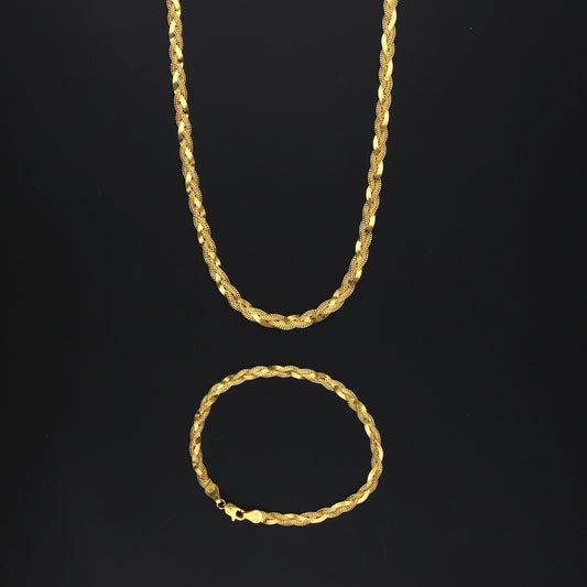 Gold Classic Braided Chain Set (Chain with Bracelet) 21KT - FKJCNST21KM10389