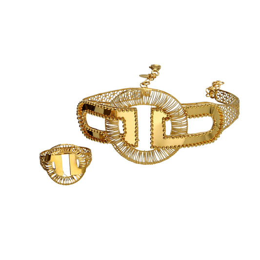 Gold Designer Bangle Set (Bangle and Ring) 21KT - FKJSET21KM10122