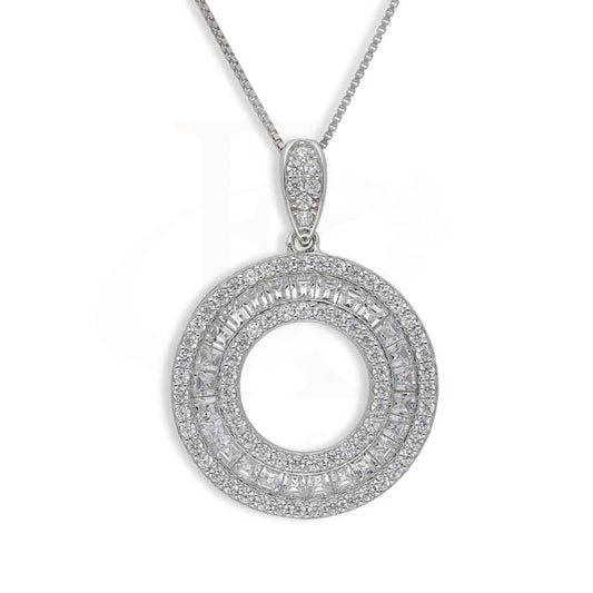 Sterling Silver 925 Round Shaped Pendant Set (Necklace, Earrings and Ring) - FKJNKLSTSL2377