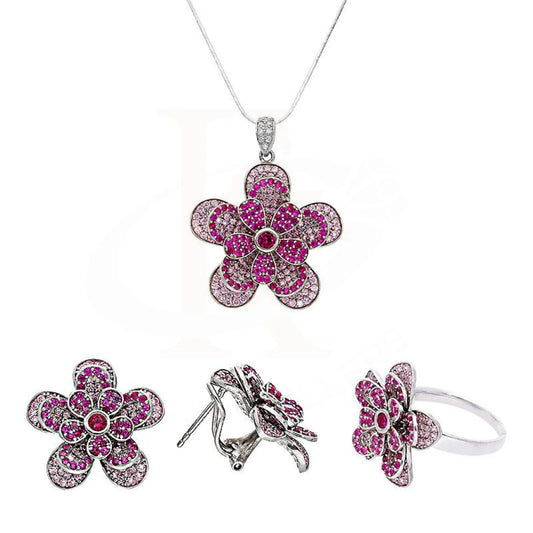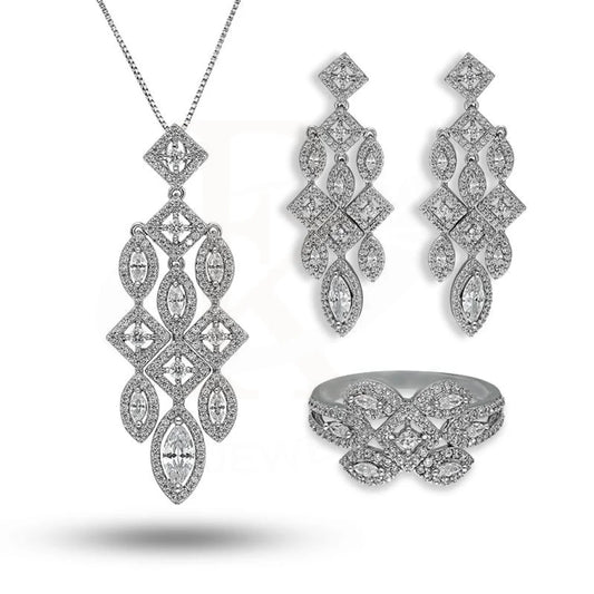Sterling Silver 925 Pendant Set (Necklace, Earrings and Ring) - FKJNKLSTSL2285
