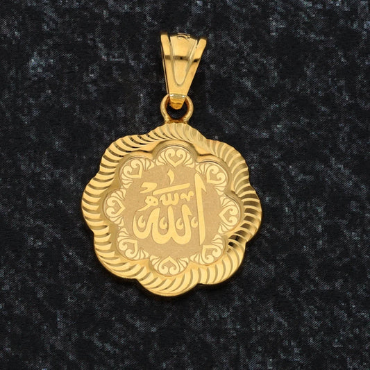 Gold Allah Name in Flower Pendant 21KT - FKJPND21KM8561