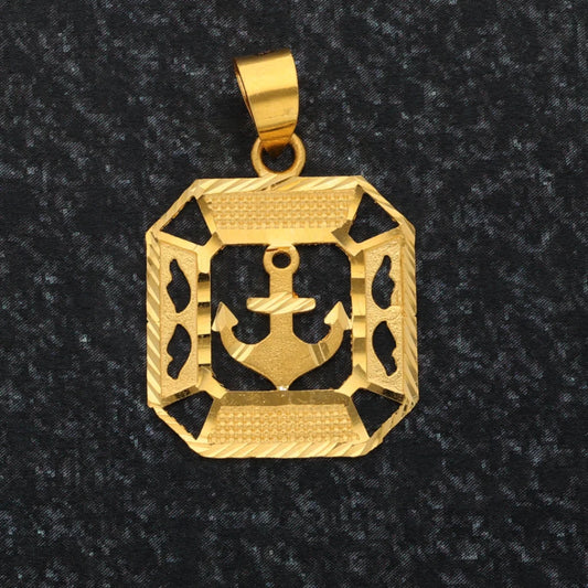 Gold Anchor in Square Frame Pendant 21KT - FKJPND21KM8608