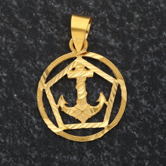 Gold Anchor Shaped in Circle Pendant 21KT - FKJPND21KM8605