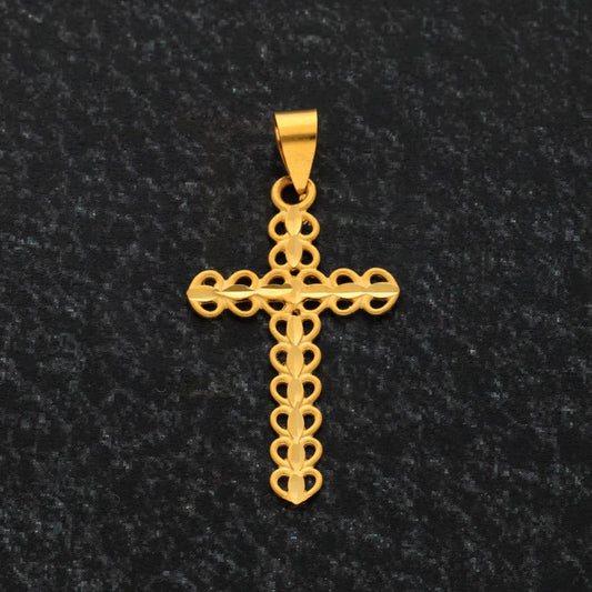Gold Hollow Cross Shaped Pendant 21KT - FKJPND21KM8542