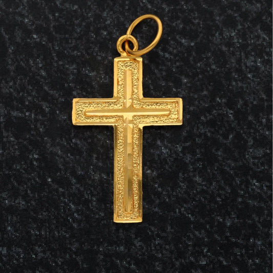 Gold Simple Cross Shaped Pendant 21KT - FKJPND21KM8568