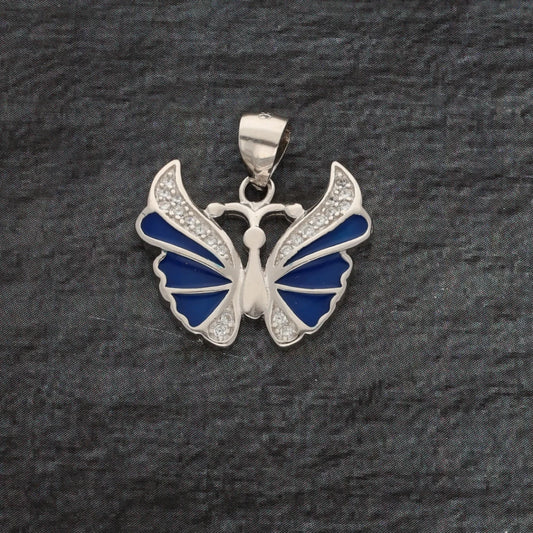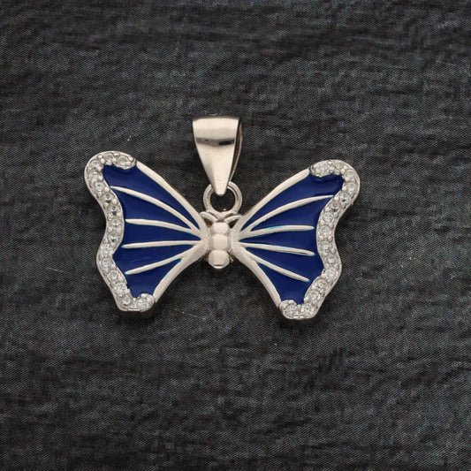 Sterling Silver 925 Cubic Zirconia Blue Butterfly Pendant - FKJPNDSL8600