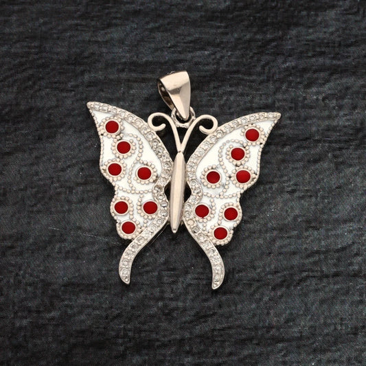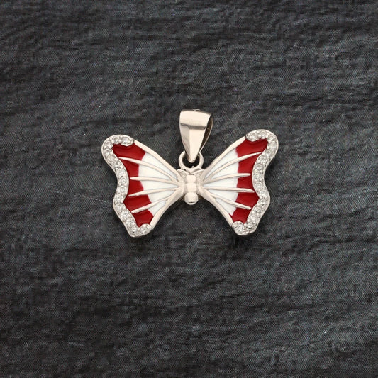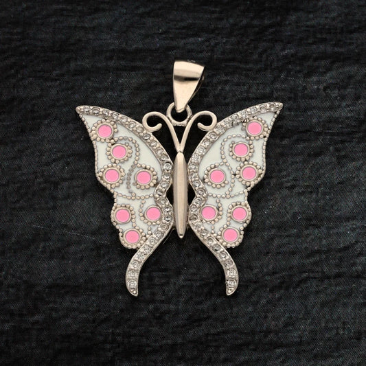 Sterling Silver 925 Enamel And Zirconia Butterfly Pendant - FKJPNDSL8603