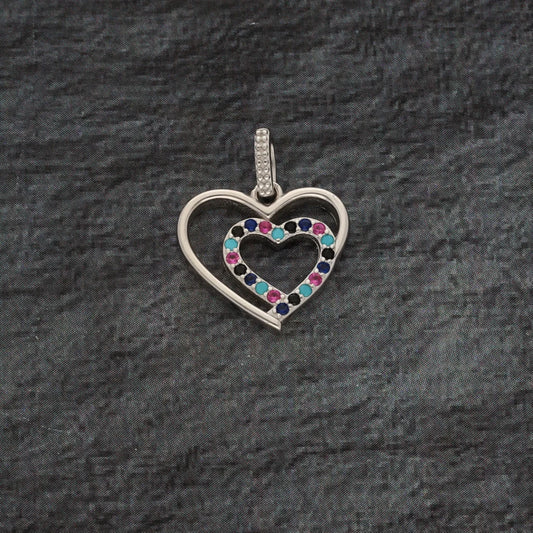 Sterling Silver 925 Double Crystal Love Heart Pendant - FKJPNDSL8599