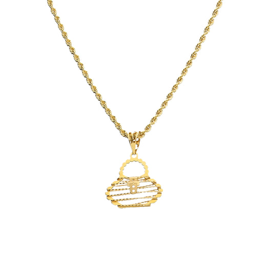 Gold Chic Purse Charm Necklace 21KT - FKJNKL21KM11459