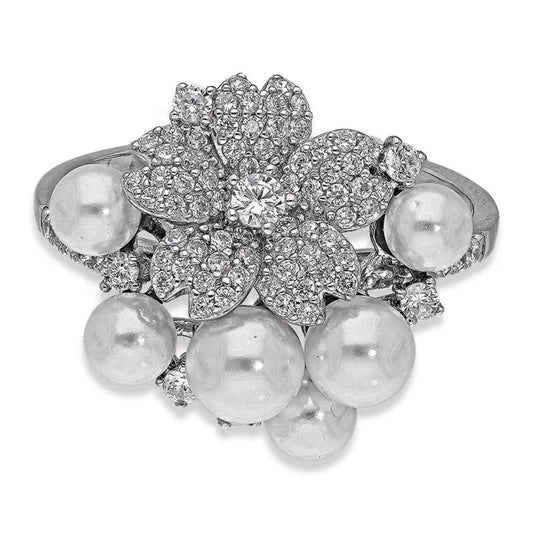 Sterling Silver 925 Flowers and Pearls Ring - FKJRNSL10118
