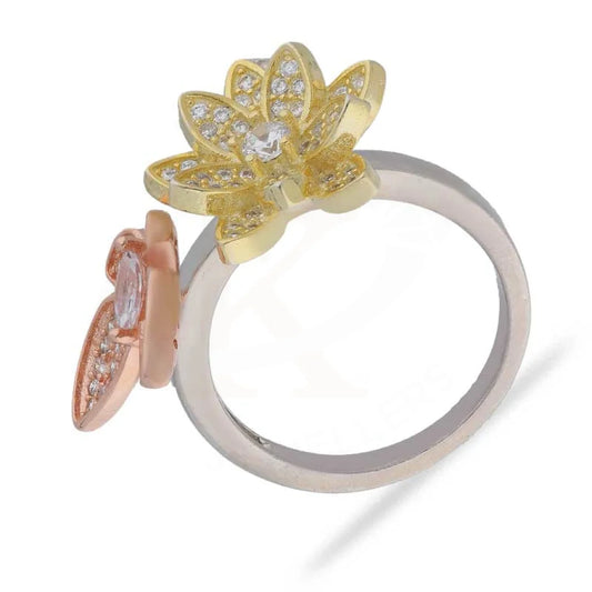 Trio Tone Sterling Silver 925 Flower With Butterfly Ring - FKJRNSL3651