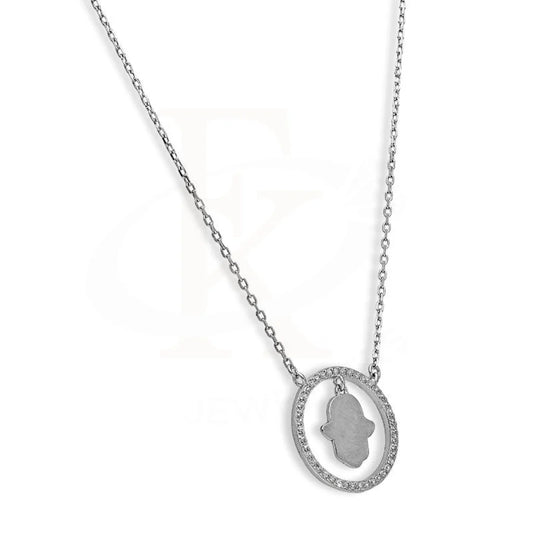 Sterling Silver 925 Round Shaped Hamsa Hand Necklace - FKJNKLSL2646