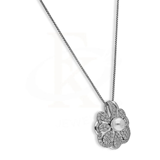 Sterling Silver 925 Flower Shaped Pearl Necklace (Chain with Pendant) - FKJNKLSL2288