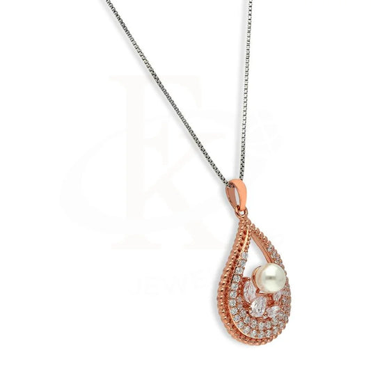 Sterling Silver 925 Rose Gold Plated Pear Shaped Pearl Necklace (Chain with Pendant) - FKJNKLSL2266