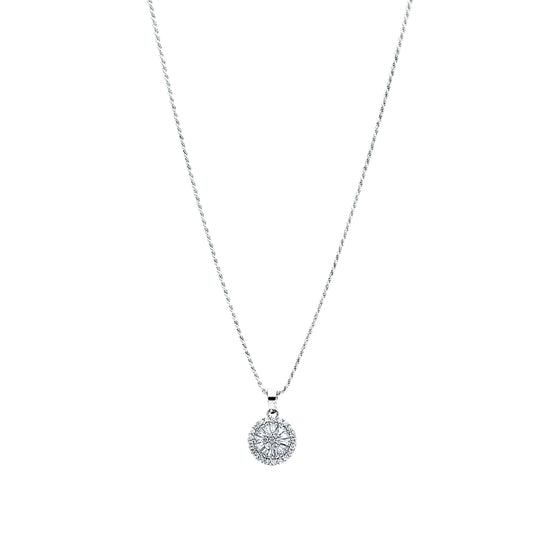 Sterling Silver 925 Round Halo Necklace (Chain with Pendant) - FKJNKLSL11094