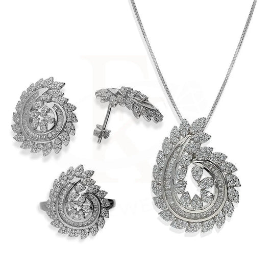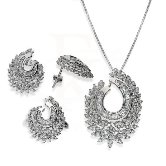 Sterling Silver 925 Pendant Set (Necklace, Earrings and Ring) - FKJNKLST2050