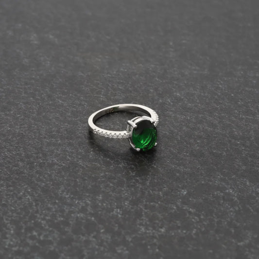 Sterling Silver 925 Faceted Green Topaz Women's Solitaire Ring - FKJRNSL8282