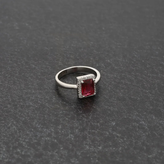 Sterling Silver 925 Faceted Red Topaz Women's Solitaire Ring - FKJRNSL8270