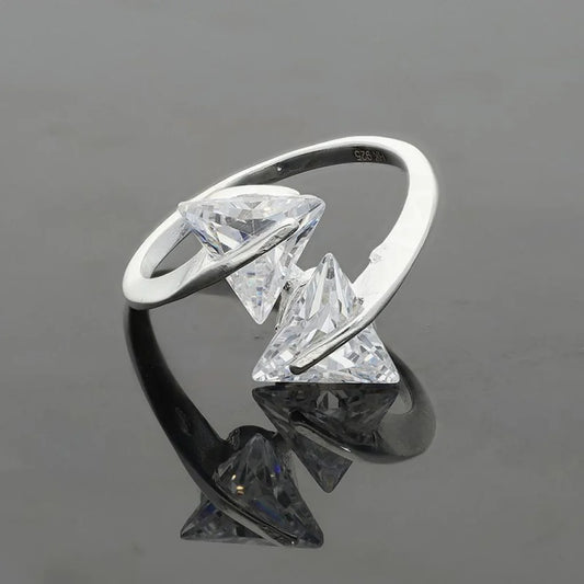 Sterling Silver 925 Prism Shaped Solitaire Ring - FKJRNSL2214