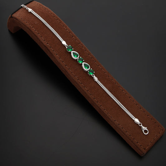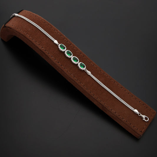 Sterling Silver 925 Classy Green Zirconia Bracelet - FKJBRLSL9487