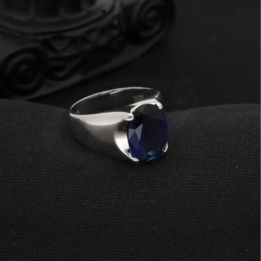 Sterling Silver 925 Men's Solitaire Blue Zircon Stone Ring - FKJRNSL8247