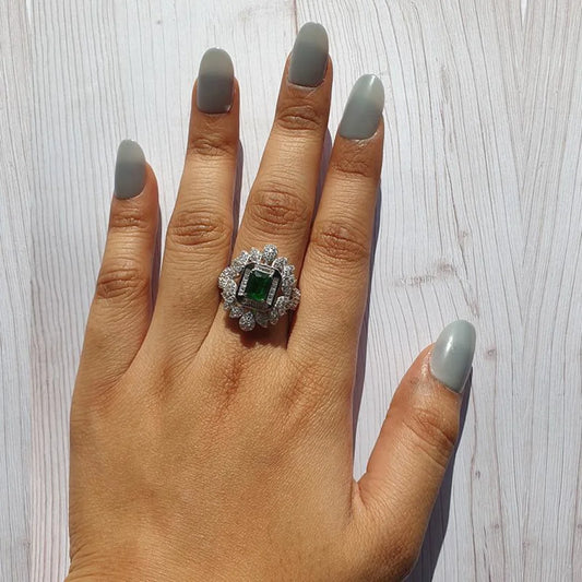 Sterling Silver 925 Green Solitaire Ring - FKJRNSL3521