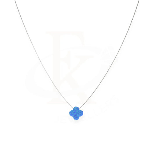 Sterling Silver 925 Blue Opal Flower Shaped Necklace - FKJNKLSL8068