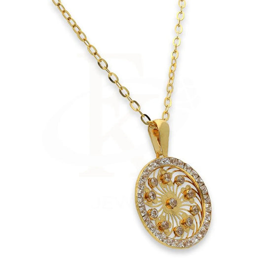 Gold Necklace (Chain with Round Shaped Flower Pendant) 18KT - FKJNKL18K2358