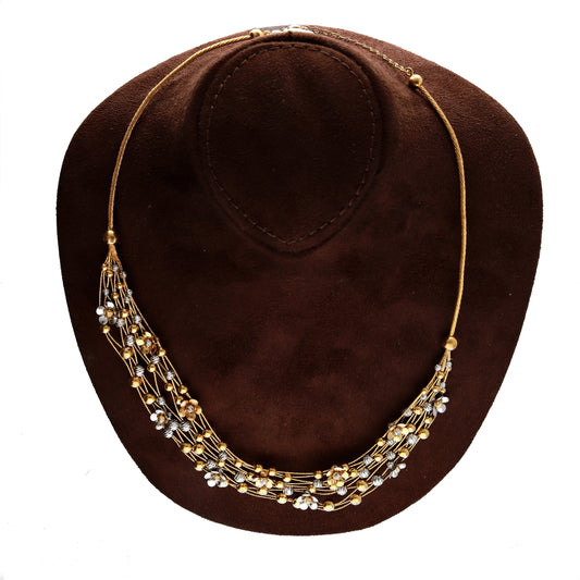 Gold Beaded Necklace Set (Necklace, Bracelet, Earrings and Ring) 21KT - FKJNKLST21KM10165