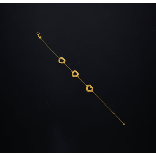 Gold Triple Heart Charm Bracelet 21KT - FKJBRL21KM10514