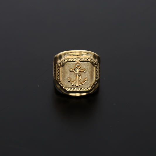 Gold Stud Anchor Design in Men's Ring 18KT - FKJRN18K9433