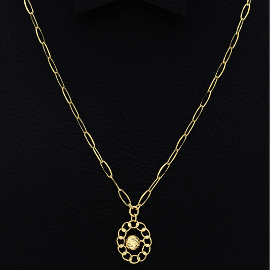 Gold Hallow Oval Shaped Necklace 18KT - FKJNKL18K9368