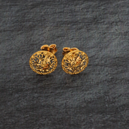 Gold Round Shaped Earrings 21KT - FKJERN21KM8489