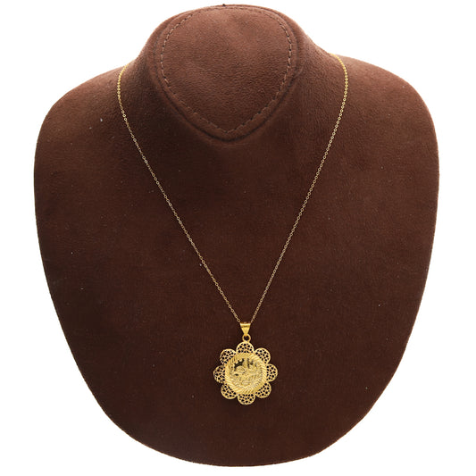 Gold Necklace (Chain with Filigree Design Turkish Lira Pendant) 21KT - FKJNKL21KM10143