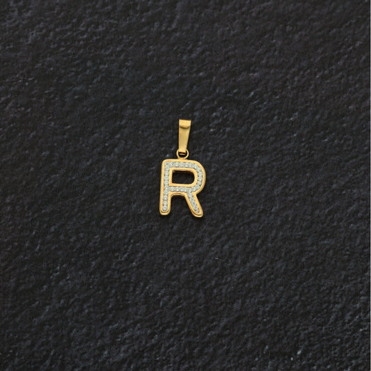 Gold R Shaped Alphabet Letter Pendant 18KT - FKJPND18K9421