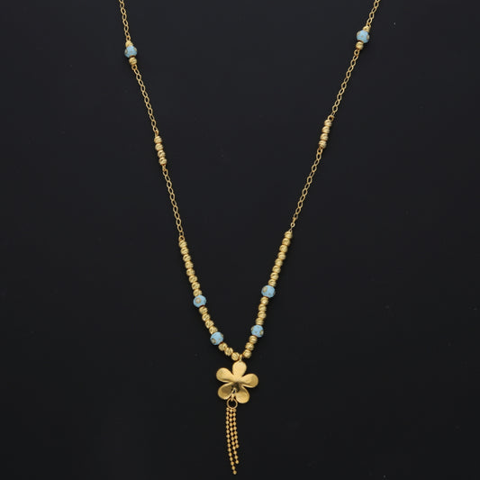 Gold Flower Tassel Drop Necklace 21KT - FKJNKL21KM10328