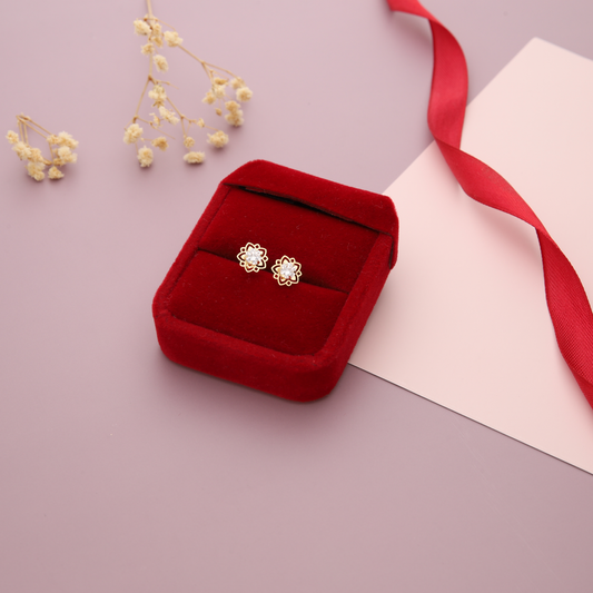 Gold Flower Shaped Earrings 18KT - FKJERN18K8835