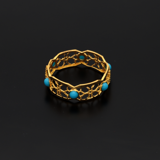 Gold Hollow Flower Turquoise Design Ring 21KT - FKJRN21K9051