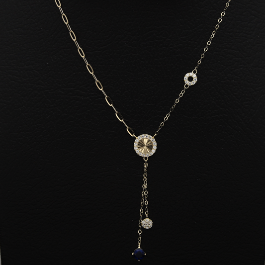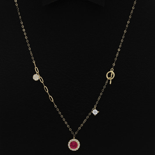 Gold Round Flower Shaped with Solitaire Necklace 18KT - FKJNKL18K9153