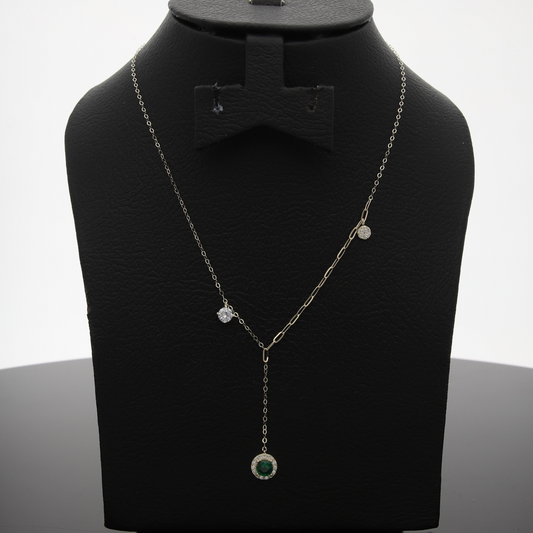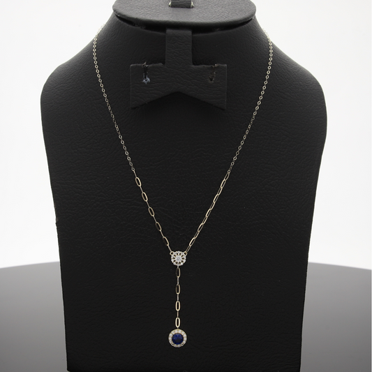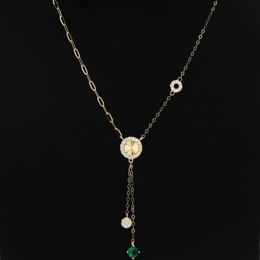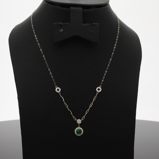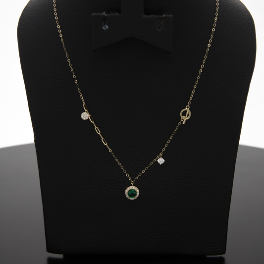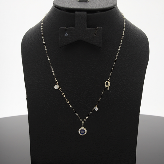 Gold Round Flower Shaped with Solitaire Necklace 18KT - FKJNKL18K9159