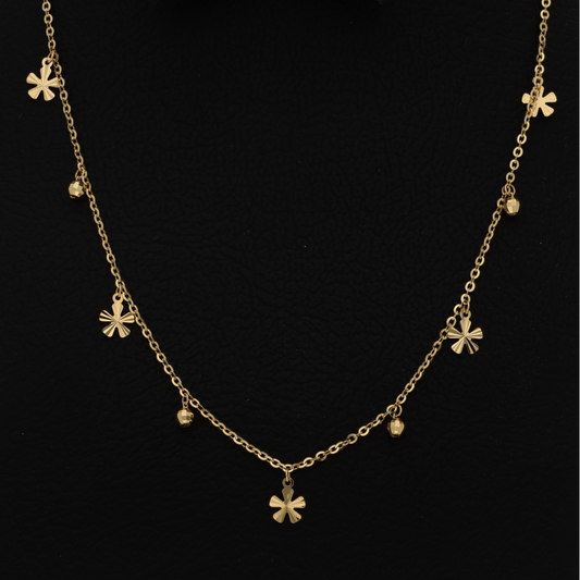 Gold Stud Ball Flower Design Necklace 18KT - FKJNKL18K9191